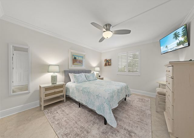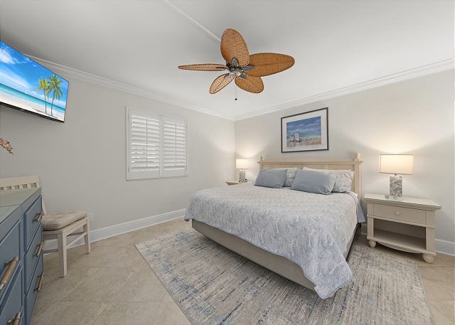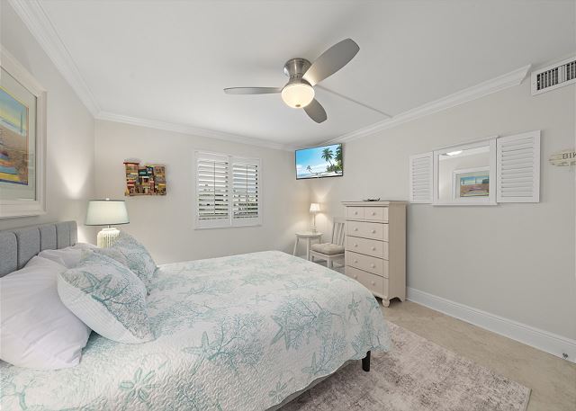 Condo amenities include: 2 bedrooms/2 bathrooms -- 1 King bed, 1 Queen bed (sleeps 4), Smart TVs (streaming only), WIFI available, shared heated pool, in-suite washer & dryer, screen & glass enclosed lanai, public BBQ gas grills, shuffleboards, tennis & pickle ball courts, elevators, covered parking. No Pets allowed. Bed linens and Bath towels included. Beach chairs, beach towels, and an umbrella are provided for added convenience.