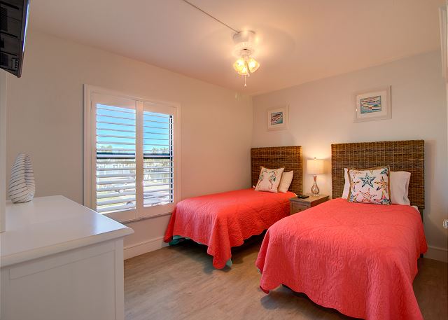 Condo amenities include: 2 bedrooms/2 bathrooms -- 1 King bed & 2 Twin bed (sleeps 4), 2 Smart TV's (streaming only), WIFI available, fully equipped kitchen, 2 heated shared pools, 2 community tennis courts, public BBQ gas grills, public dock & fishing pier, in-suite washer & dryer. Bed linens and Bath towels included. This unit comes stocked with beach chairs, beach towels and an umbrella. No elevator access. No Pets allowed.