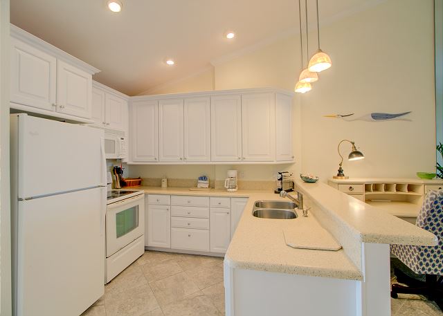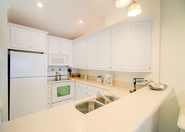 Full Kitchen, Refrigerator, Coffee Maker, Microwave, Toaster, Cookware, Dishwasher, Utensils, Plates & Glassware