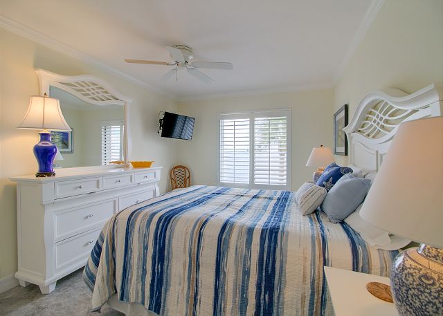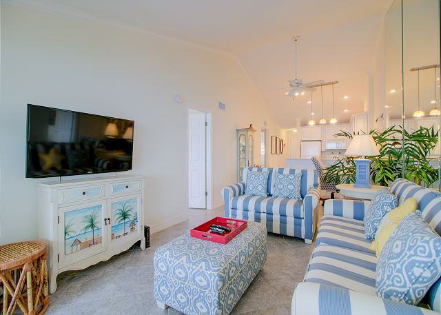Condo amenities include: 2 bedrooms/2 bathrooms -- 1 Queen bed, 2 Twin bed (sleeps 4), Smart TVs (streaming only), free WIFI, fully equipped kitchen, 2 heated shared pools, 2 community tennis courts, public BBQ gas grills, dock & fishing pier, in-suite washer & dryer. Bed linens and Bath towels included. No Pets allowed. This unit comes stocked with beach chairs, beach towels and an umbrella.