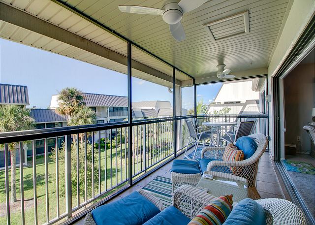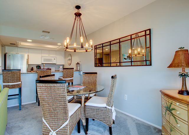 Condo amenities include: 2 bedrooms/2 bathrooms -- 1 King bed, 2 Twin bed & a pull-out sleeper sofa (sleeps 6), Smart TVs (streaming only), free WIFI, fully equipped kitchen, 2 heated shared pools, 2 community tennis courts, public BBQ gas grills, dock & fishing pier, in-suite washer & dryer. Bed linens and Bath towels included. No Pets allowed. This unit comes stocked with beach chairs, beach towels and an umbrella.