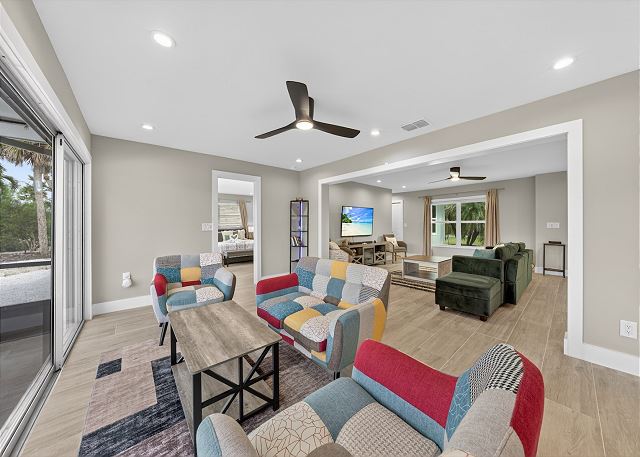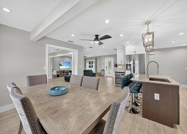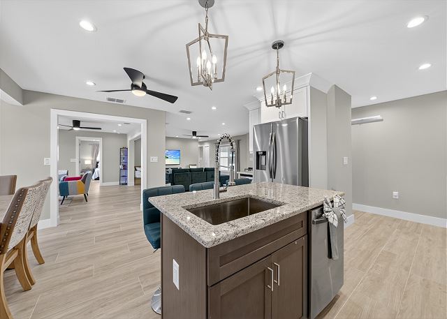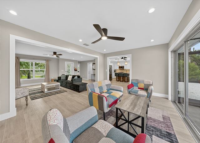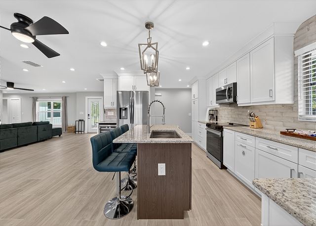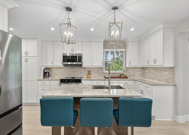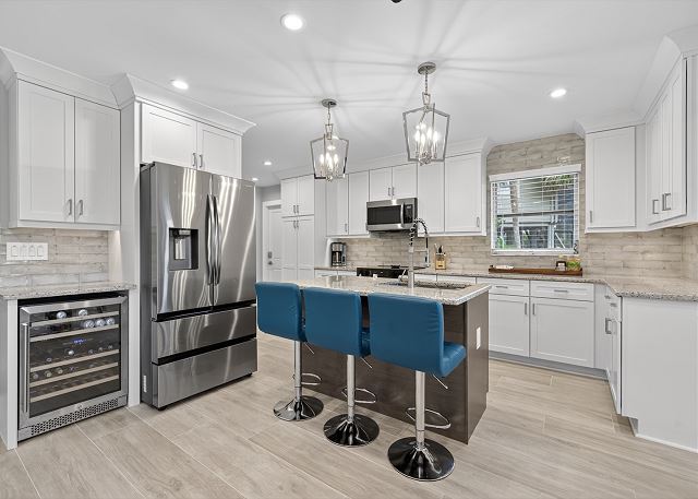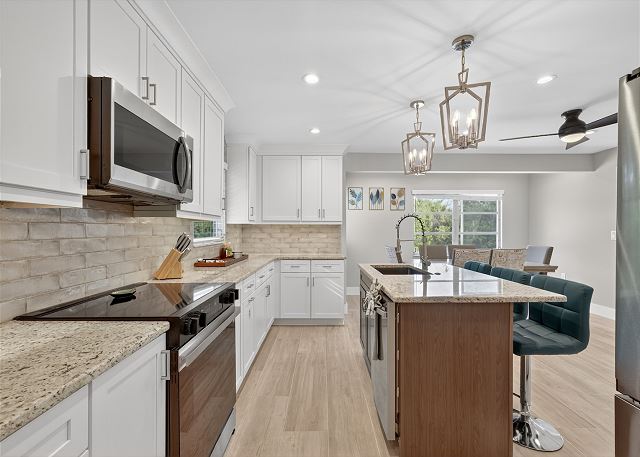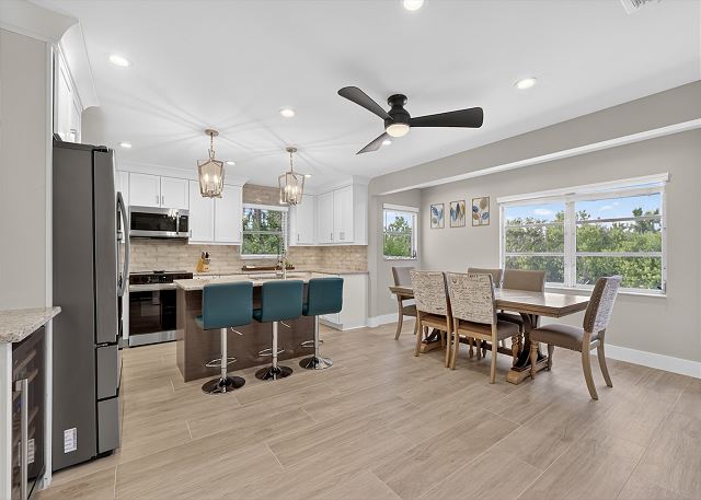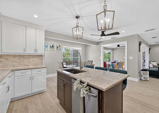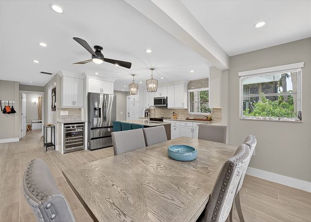 Tucked away in the desirable Gulf Shores neighborhood of Sanibel, "Sugarfish" is a beautifully remodeled 3-bedroom, 3-bathroom ground-level home offering the perfect mix of comfort, style, and location. Overlooking a peaceful canal and just a short walk from private beach access via a quiet neighborhood path, this home makes island living easy and enjoyable. Inside, the bright and airy layout features an open floor plan with a spacious living area, fully equipped kitchen, and a thoughtfully designed split bedroom layout that offers added privacy for guests. Each bedroom is tastefully furnished, and all three bathrooms have been updated with modern finishes. Whether you're sipping your morning coffee by the water, enjoying a walk to the beach, or relaxing indoors after a day of exploring the island, "Sugarfish" provides a comfortable, stylish retreat to call home during your month long+ stay.