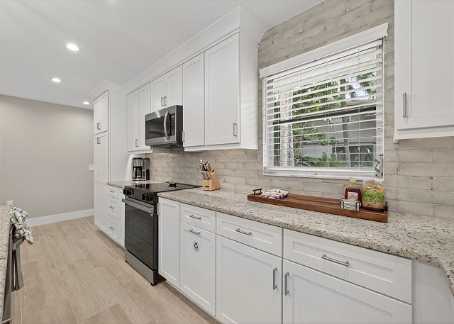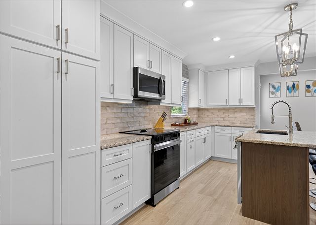 Full Kitchen, Refrigerator, Coffee Maker, Microwave, Toaster, Cookware, New Appliances, Dishwasher, Utensils, Plates & Glassware