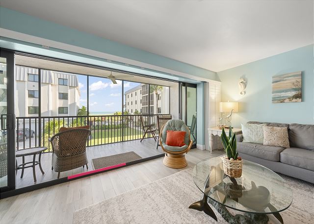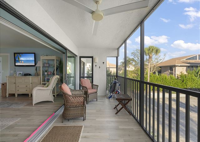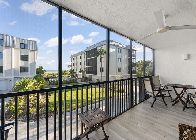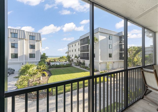 Balcony, Shared Pool, Tennis, Beach, Lanai, Heated Pool, Screened Lanai, Beach Chairs, Beach Towels, Beach Umbrella, Community Tennis Court