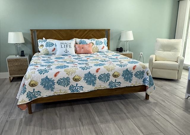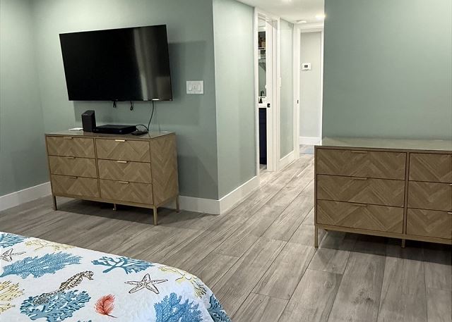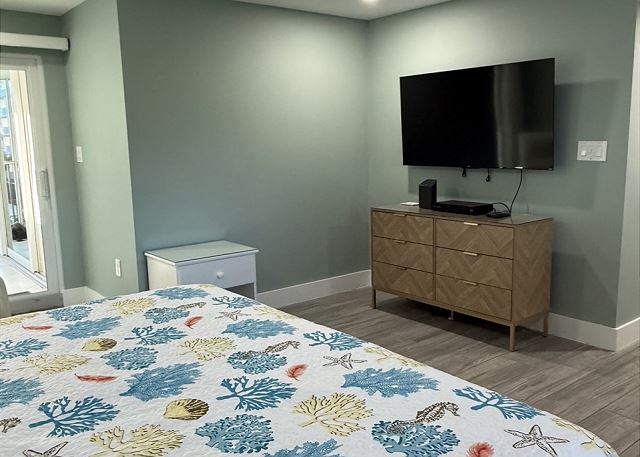 Condo amenities include: 2 bedrooms/2 bathrooms -- 1 King bed, 1 Full & 1 Twin bunk beds, 1 Twin trundle bed & a pullout sleeper sofa (sleeps 6), Smart TVs (streaming only), WIFI available, shared community heated pool, in-suite washer & dryer, fully equipped kitchen, BBQ grills, elevators, shuffleboard. Pets Considered (1 Dog up to 40 lbs MAX only). Bed linens and Bath towels included. This unit comes stocked with beach chairs, beach towels and an umbrella.