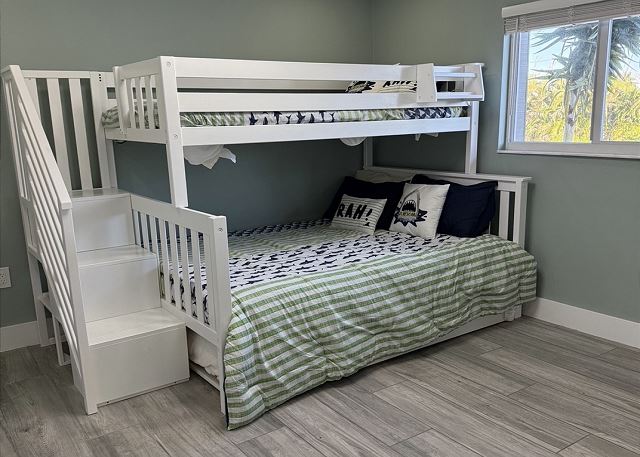 1 king bed, 1 full bed, 2 twin beds, 1 sleeper sofa