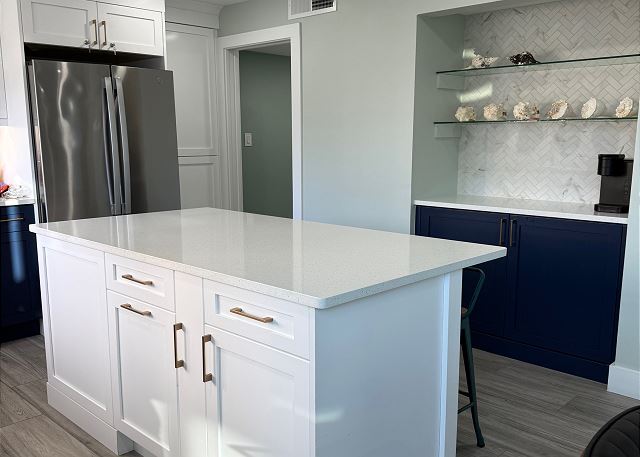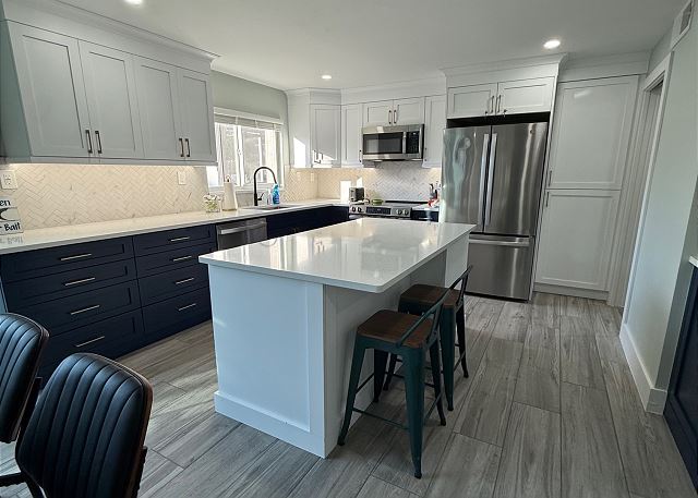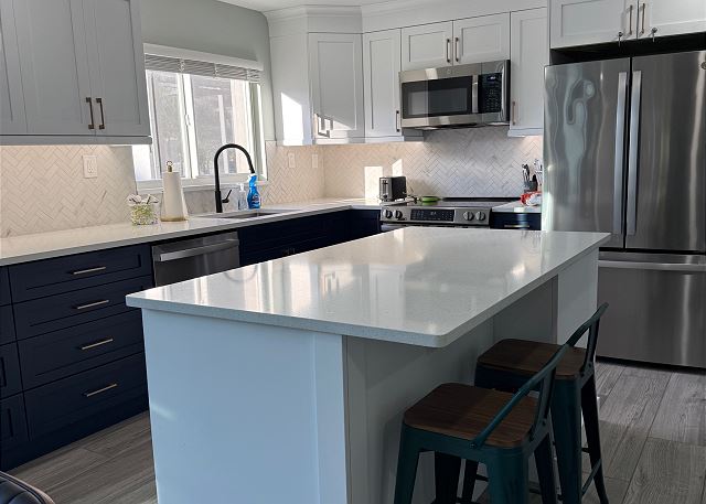 Full Kitchen, Refrigerator, Coffee Maker, Microwave, Toaster, Cookware, Dishwasher, Utensils, Plates & Glassware