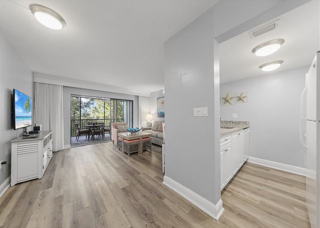 Nestled within the lush, tropical grounds of Captiva Resort, Villa 3126 offers the perfect blend of island charm and modern comfort. This beautifully updated one-bedroom, one-bathroom condo sits just steps from the beach, providing a serene retreat surrounded by swaying palms and warm Gulf breezes. An airy open-concept living space welcomes you inside, featuring contemporary coastal décor, abundant natural light, and easy access to a spacious screened lanai where you can relax, dine, and take in the peaceful treetop views. The fully equipped kitchen flows seamlessly into the living and dining areas, creating an ideal setting for unwinding after a day on the sand. The bedroom offers a comfortable, private haven, while the updated bathroom brings a fresh, clean feel. With its prime location within walking distance to the beach, nearby community pool, and the vibrant heart of Captiva, this villa combines convenience with the restful ambiance of a true island getaway. Whether you’re seeking a romantic escape or a quiet coastal retreat, Villa 3126 delivers a welcoming space designed for relaxation and effortless beachside living.