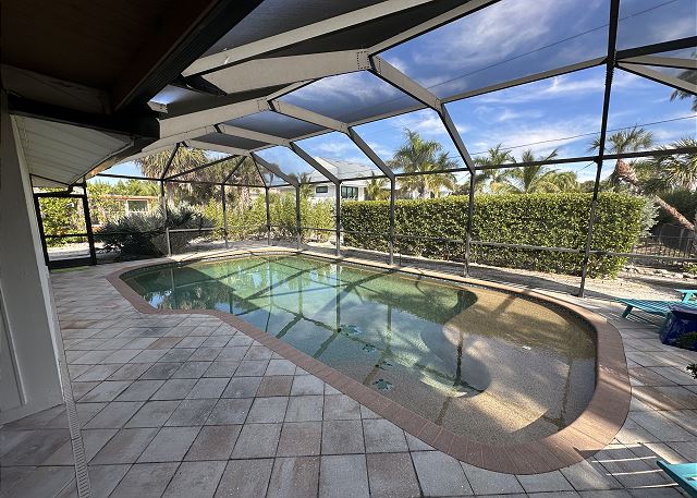 Welcome to "Tahitian Waters"—your serene Sanibel escape. This charming 2-bedroom, 2-bathroom pet-friendly pool home is tucked away on peaceful Tahiti Drive and offers quick, easy access to the private deeded beach just down the road. Bright, airy, and thoughtfully updated, the home captures the feel of a classic beach cottage with all the comforts you want for a relaxing island getaway. Step inside to an inviting open living area filled with natural light, coastal décor, and comfortable seating. The modern kitchen features crisp white cabinetry, stainless appliances, and a spacious breakfast bar for casual meals and conversation. Outside, your private screened-in pool is the highlight—surrounded by lush tropical landscaping and plenty of deck space to lounge, dine, or enjoy your morning coffee. It’s a peaceful, secluded spot designed for unwinding. Complete with two bedrooms both featuring King beds, updated bathrooms, and a location that blends tranquility with convenience, Tahitian Waters is the perfect haven for beach lovers, families, and anyone craving the laid-back magic of Sanibel Island. Your island vacation starts here!