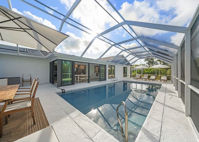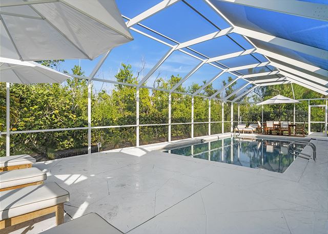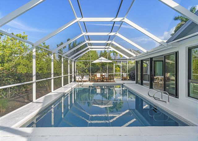 Patio, BBQ Grill, Outdoor Shower, Private Pool, Beach, Lanai, Heated Pool, Outdoor Dining Furniture, Screened Lanai, Garage, Covered Parking, Beach Chairs, Beach Towels, Beach Umbrella