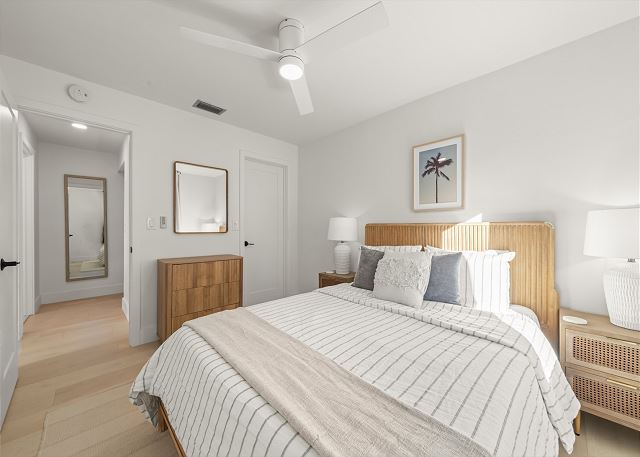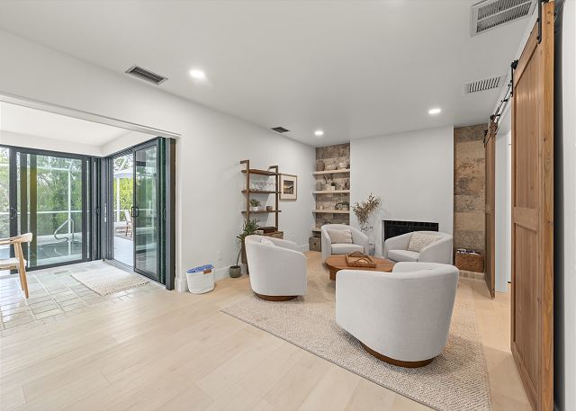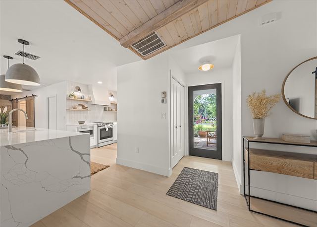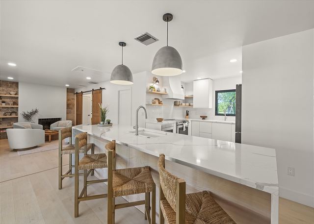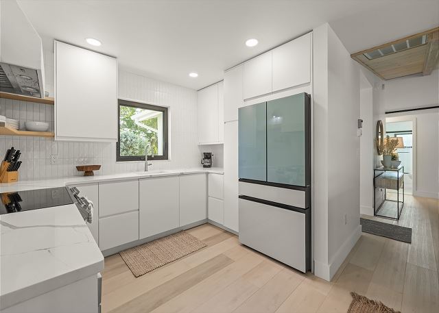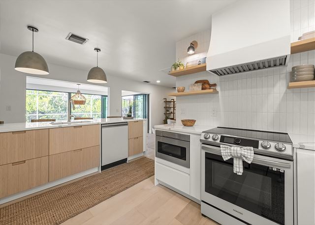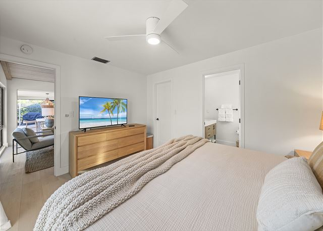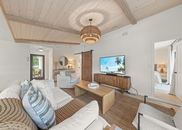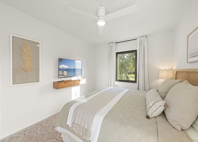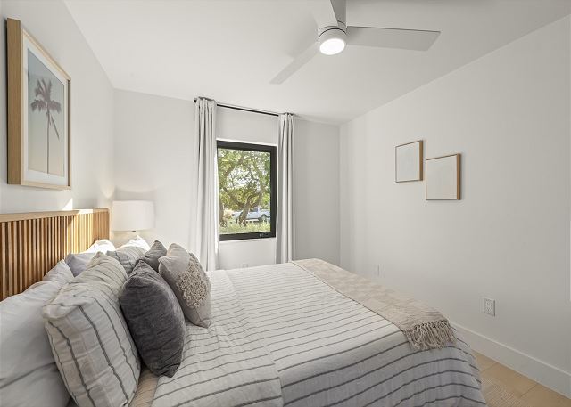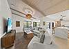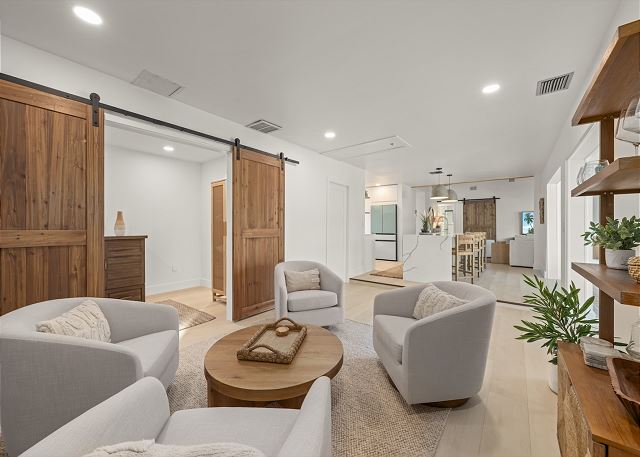 Surrounded by lush tropical landscaping, the home welcomes you with a bright, airy interior featuring an open-concept layout designed for easy island living. The spacious kitchen is a true gathering spot, complete with a large island, clean white cabinetry, and contemporary finishes that flow seamlessly into the living and dining areas. Natural light fills the home, highlighting warm wood accents and a serene coastal aesthetic throughout. The living space opens effortlessly to the outdoors, where you’ll find a private screened pool area—perfect for morning swims, afternoon lounging, or evenings spent under the island sky. Whether you’re enjoying coffee poolside or relaxing after a day at the beach, this home offers a true sense of retreat. With four comfortable bedrooms, there’s plenty of space for families or groups to spread out and feel at home. Thoughtfully furnished and pet friendly, this home ensures every member of your group—two-legged and four-legged alike—can enjoy the island lifestyle.
