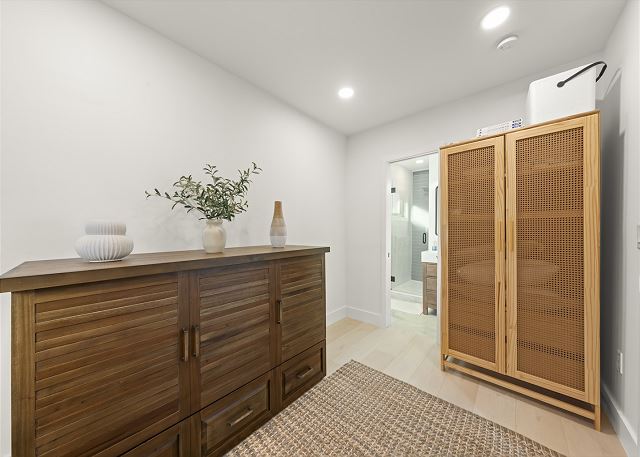 Home amenities include 4 bedrooms/3 bathrooms -- 2 King beds, 1 Queen bed, & 1 Queen pull-out Murphy bed (sleeps 8). Smart TVs (streaming only), WIFI available, private heated pool, spacious outdoor patio, washer & dryer, BBQ gas grill, garage parking. Pet Allowed (Dogs Only). Bed linens and bath towels included. Beach chairs, beach towels, and an umbrella are provided for added convenience.