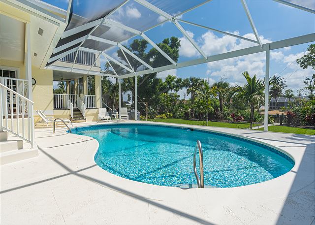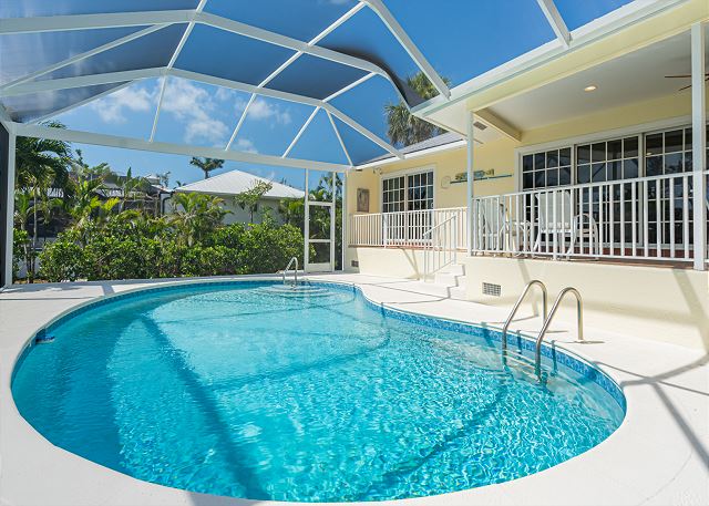 Patio, Private Pool, Beach, Lanai, Canal Front, Heated Pool, Outdoor Dining Furniture, Screened Lanai, Garage, Beach Chairs, Beach Towels, Beach Umbrella