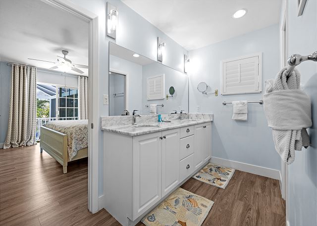 Home amenities include: 3 bedrooms/2 bathrooms -- 2 King beds & 3 Twin beds (2 bunk, 1 single) (sleeps 7), WIFI available, Smart TV's (streaming only), heated pool, large screen enclosed lanai, washer & dryer, fully equipped kitchen, BBQ gas grill, garage parking. Pets Allowed (Dogs only). Bed linens and bath towels included. Beach chairs, beach towels, and an umbrella are provided for added convenience.