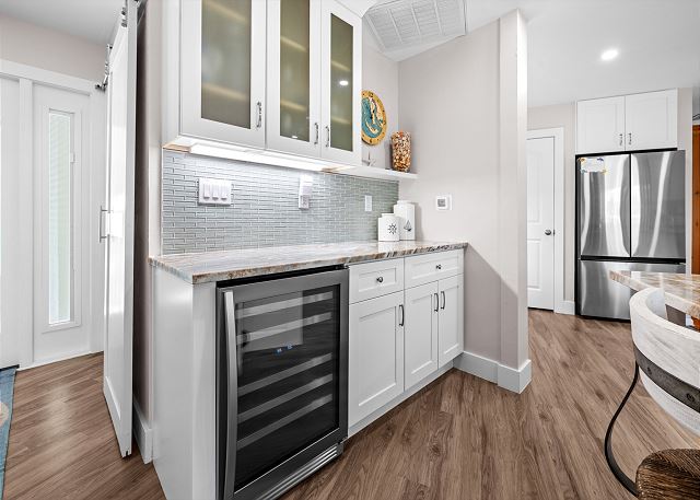 Full Kitchen, Refrigerator, Coffee Maker, Microwave, Toaster, Cookware, Dishwasher, Utensils, Plates & Glassware