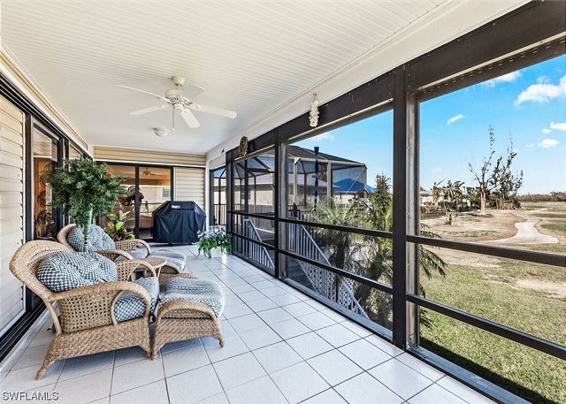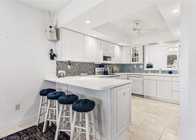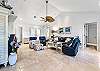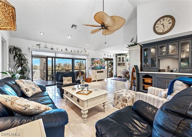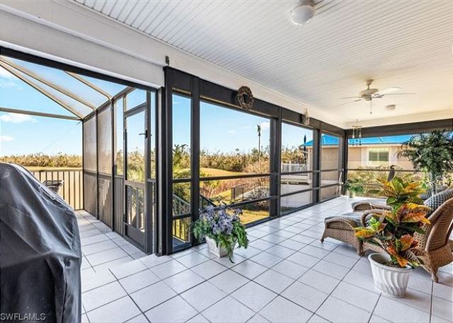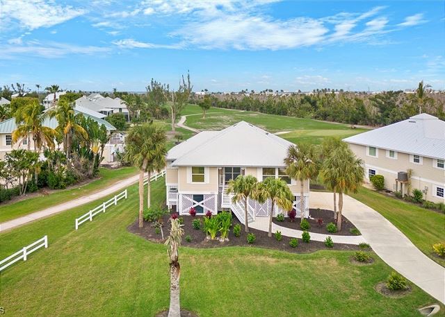 Step inside to an inviting, light-filled living space with soaring ceilings and a relaxed coastal design. The open-concept layout creates a seamless flow between the living, dining, and kitchen areas, making it easy to unwind or entertain. Large sliding glass doors lead out to the spacious lanai, where you can sip your morning coffee or enjoy evening cocktails while overlooking the lush greens of the golf course. The well-appointed kitchen features ample cabinetry and counter space, making meal prep a breeze. The primary suite provides a peaceful retreat with plenty of natural light and a private en-suite bathroom, while two additional guest bedrooms offer comfortable accommodations for family and friends. Outside, tropical landscaping and swaying palms surround the home, enhancing the tranquil island atmosphere. Whether you're lounging on the lanai, exploring nearby beaches, or enjoying the amenities of The Dunes, Seaside Links is the perfect home base for a relaxing Sanibel vacation. Come experience laid-back island living with stunning golf course views at Seaside Links—where every day feels like a getaway.