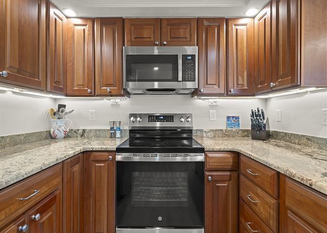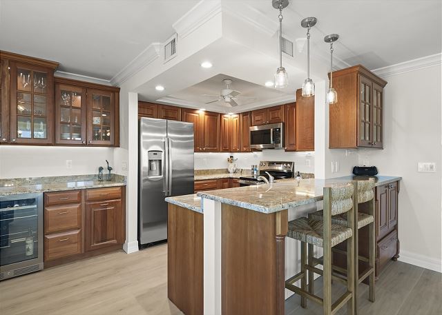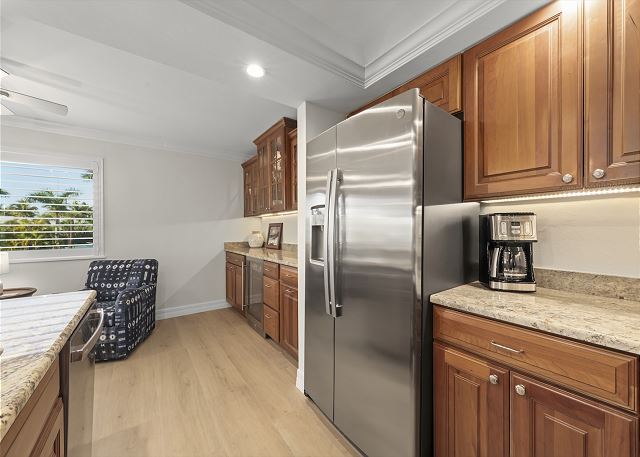 Full Kitchen, Refrigerator, Coffee Maker, Microwave, Toaster, Cookware, Dishwasher, Utensils, Plates & Glassware