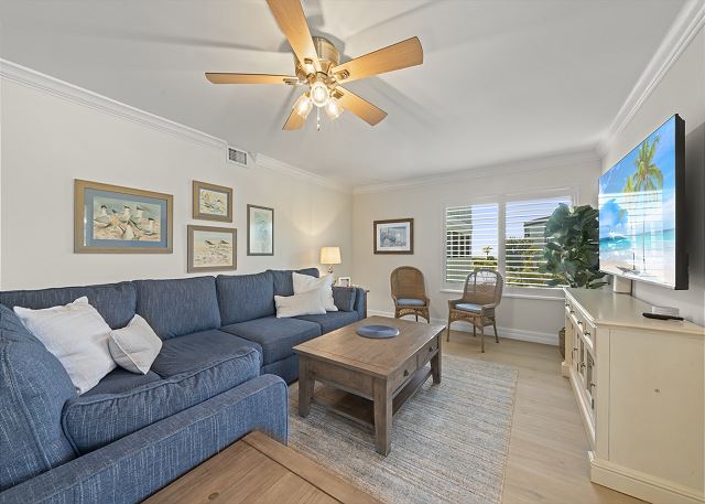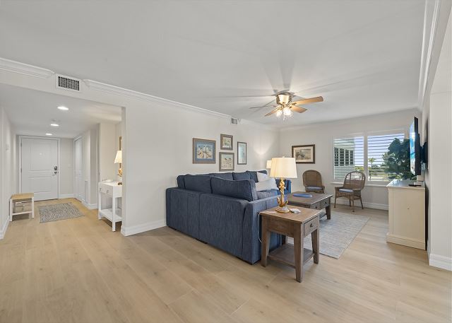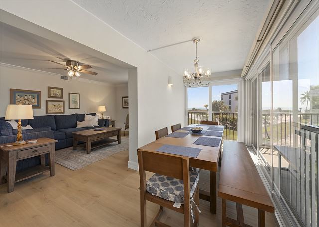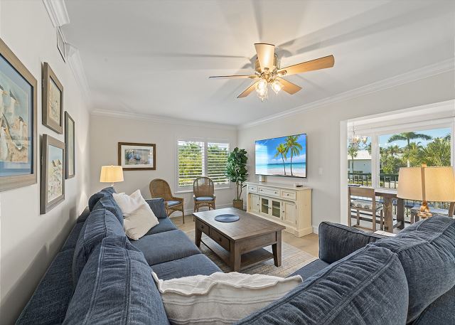 Welcome to Sanibel Surfside #215, a coastal-chic 2 bedroom condo designed for unforgettable beach vacations. Whether you're planning a romantic escape or a family beach trip, this beautifully furnished retreat offers the ideal setting to unwind and enjoy island life. Inside, you'll find tasteful décor with a fresh, coastal flair and all the comforts of home. The spacious screened-in lanai is perfect for dining, lounging, or simply soaking in the tranquil tropical atmosphere. Best of all, the beach is just a few steps away—you'll be on the sand in no time! Treat yourself to a week in paradise. Book your stay at Surfside #215 and experience the best of Sanibel Island living.